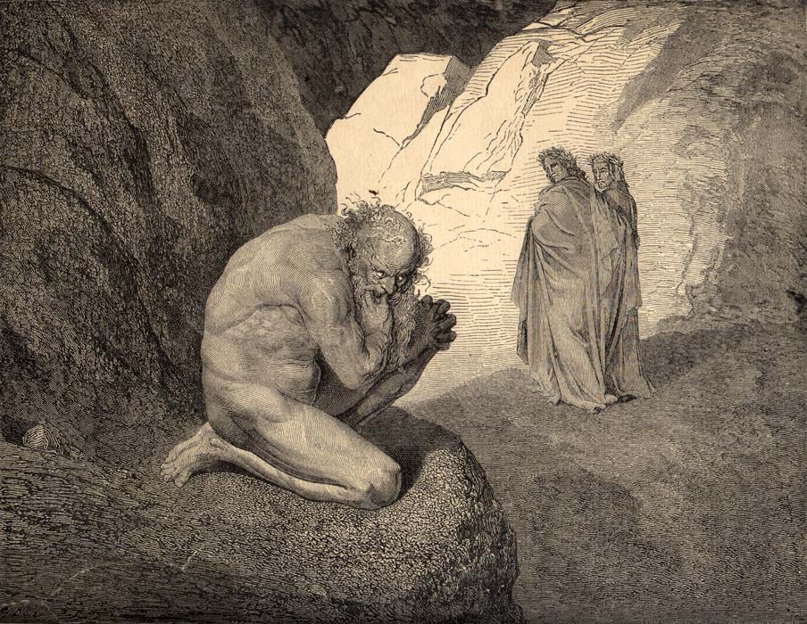 When avaricious and prodigal meet, they reproach each other for their guilt. Many are men of the Church, but Dante cannot recognize them because their guilt has deformed them to the point of making them unrecognizable.
