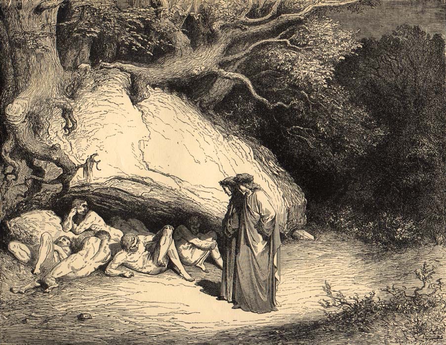 As in life they indulged their gluttony too much, loving refined and fragrant food and drink, so now they’re forced to satiate themselves with a filthy and stinking filth. Because they ate greedily, breaking the food, now they are greedily torn to pieces by Cerberus.